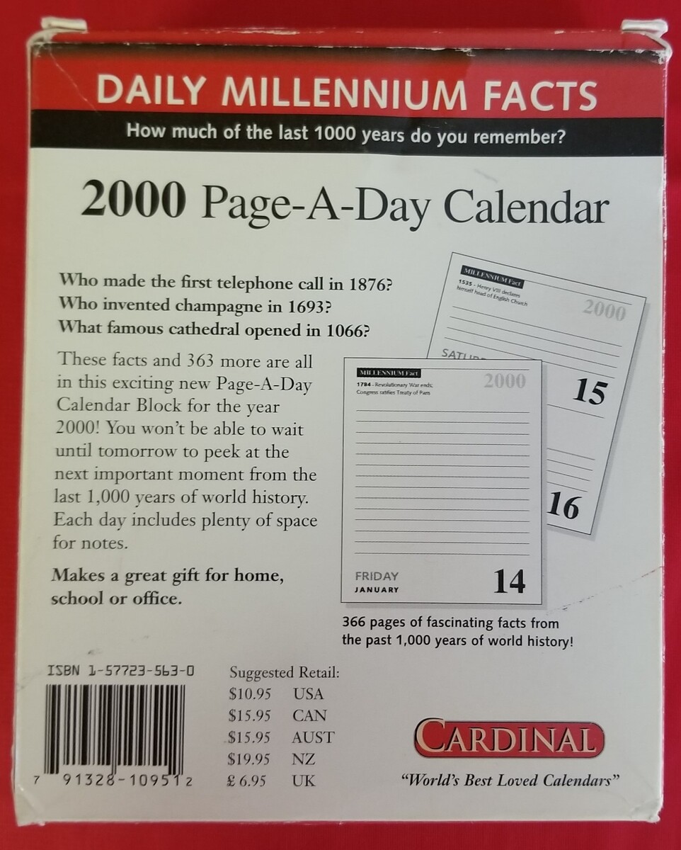 Cardinal Year 2000 Unused Page-A-Day Desktop Calendar 366 Historical Facts