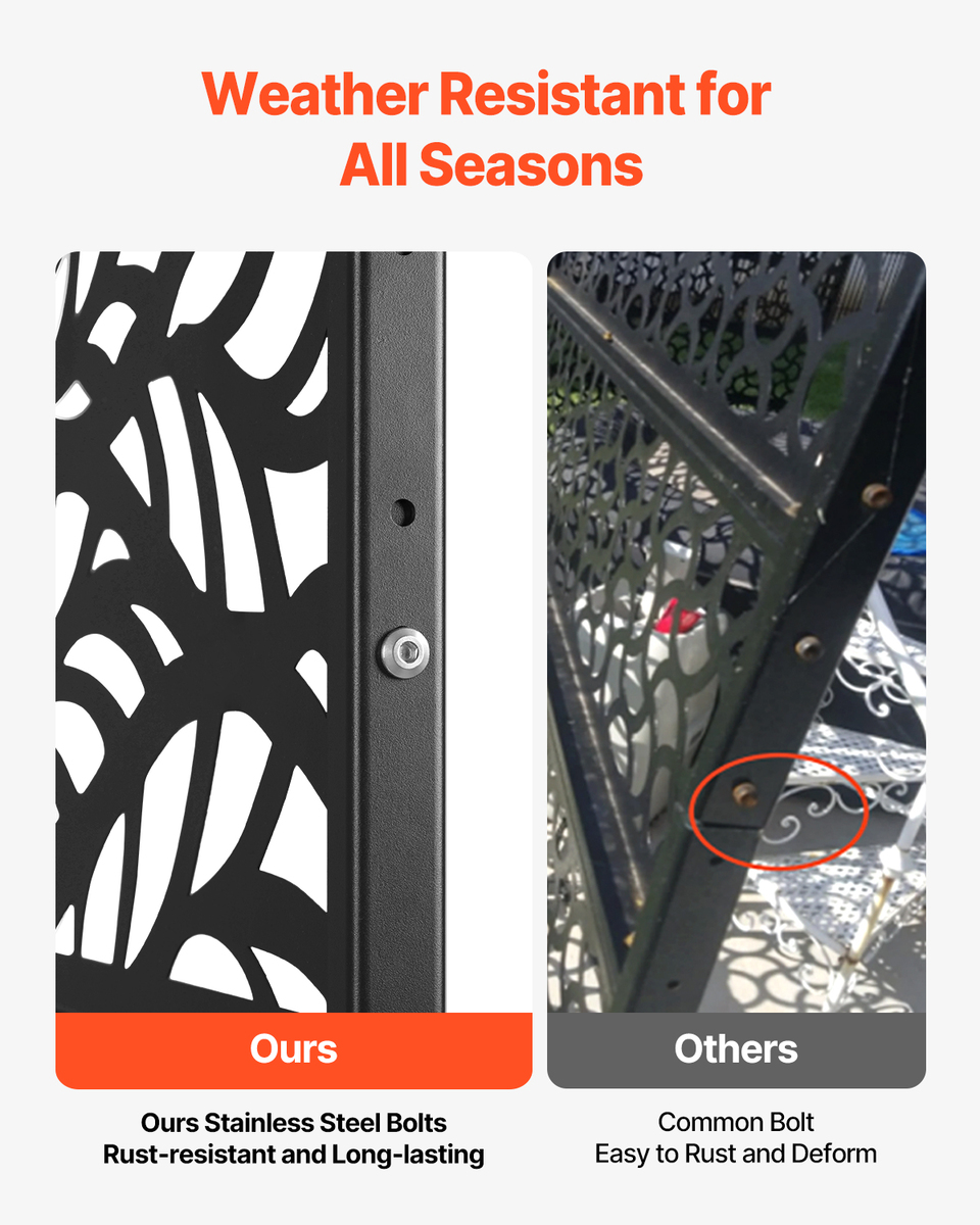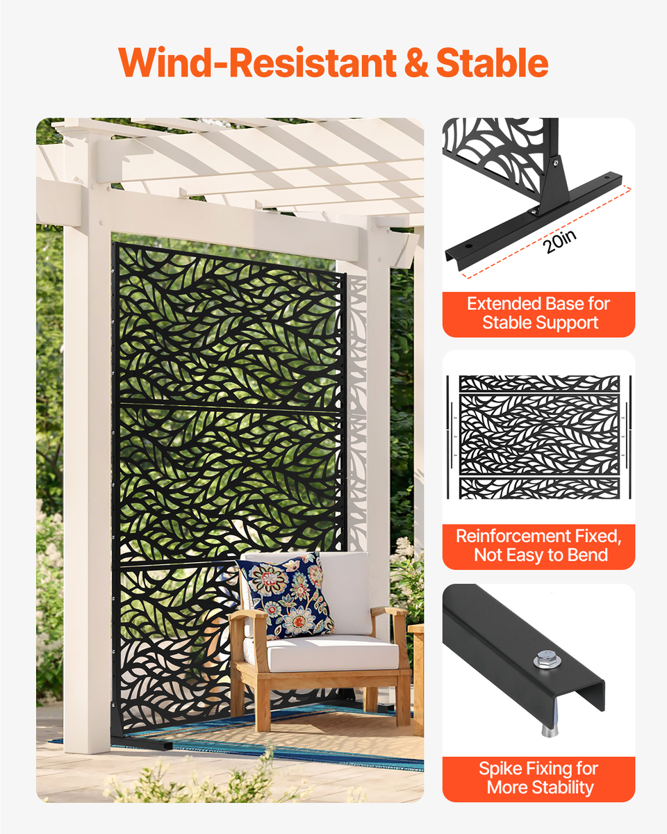 Elegant Privacy Solution: Enhance your living space with a stylish metal privacy screen that not only defines areas but seamlessly blends with any interior décor. This patio privacy screen adds a touch of elegance while creating a secluded, private space, providing you with both privacy and aesthetic appeal.
