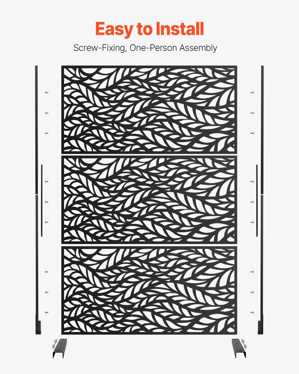VEVOR Metal Privacy Screen 47"×72" 3-Panel Steel Freestanding Decorative Fence