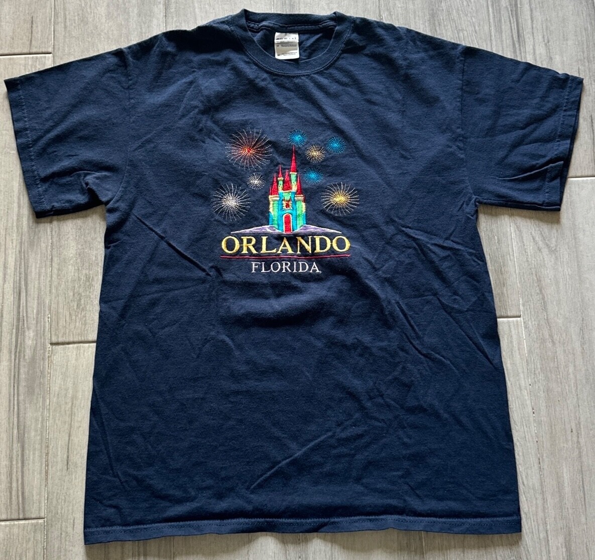 Vintage Orlando Florida T Shirt Adult Men's Embroidered Castle Fireworks M GVC