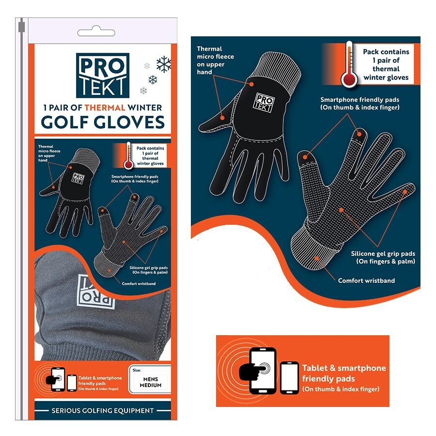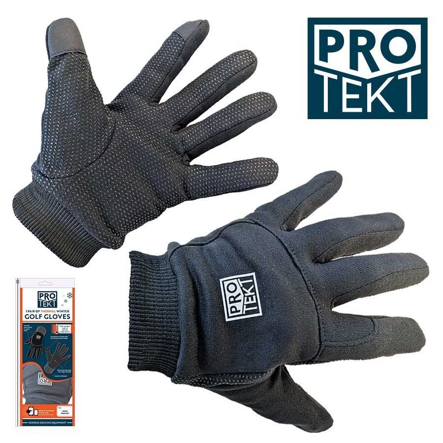 A Pair of Pro Tekt Thermal Winter Golf Gloves - Black. All Sizes Small to XL.