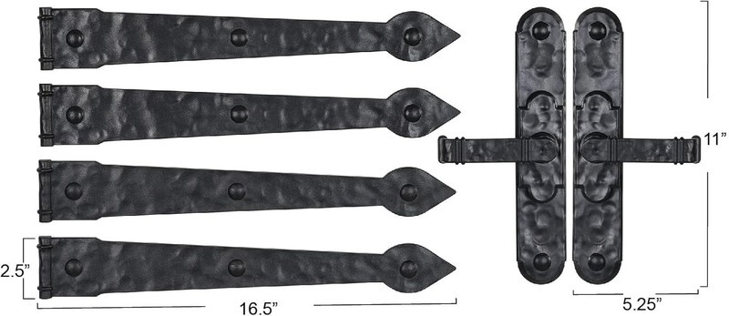(4) Hinges 16.5" L x 2.5? W, (2) Handles 11" L x 5.25" W x 1.25" D