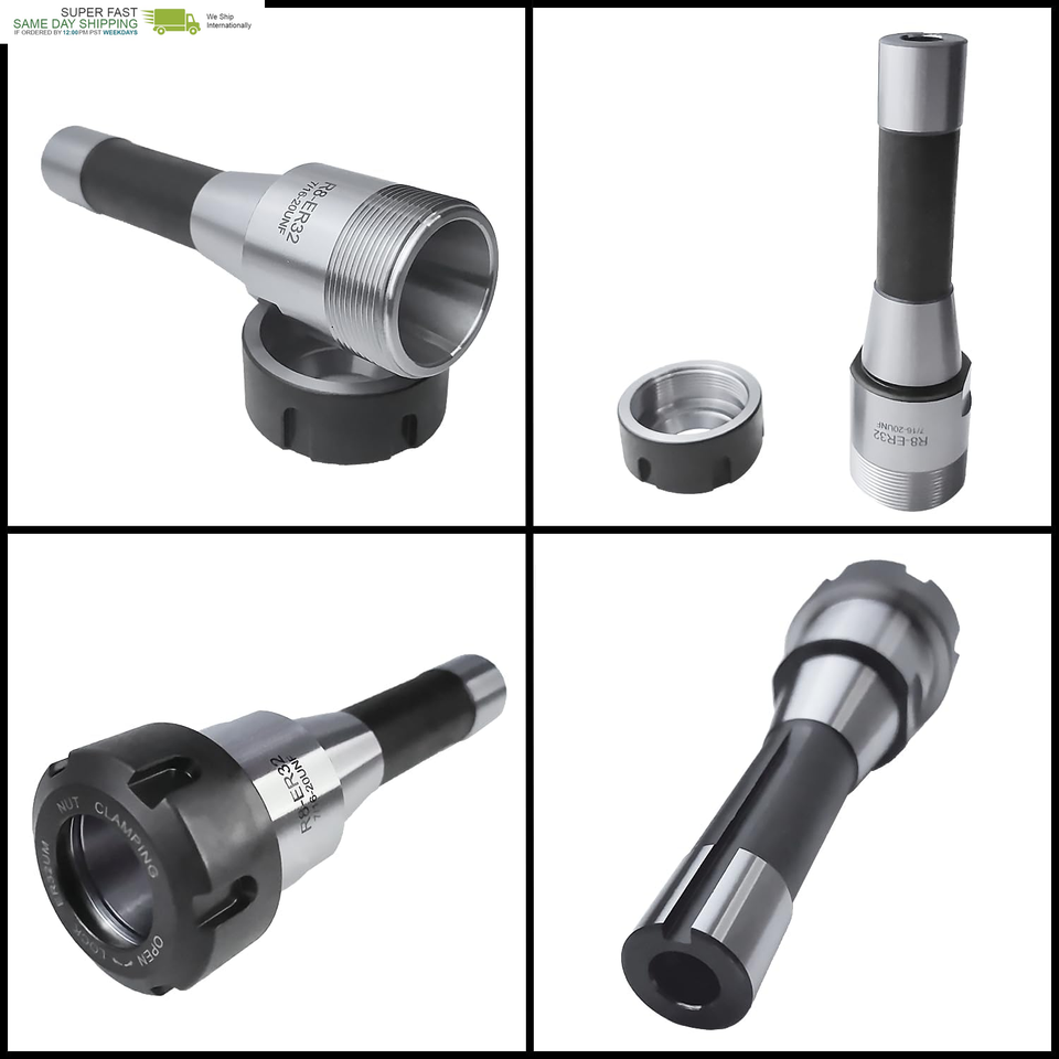 The R8 ER32 chuck kit includes a range of ER32 chucks that can accommodate various cutting tool sizes, typically ranging from 1mm to 26mm; this versatility enables users to perform a wide range of milling operations using different tool diameters