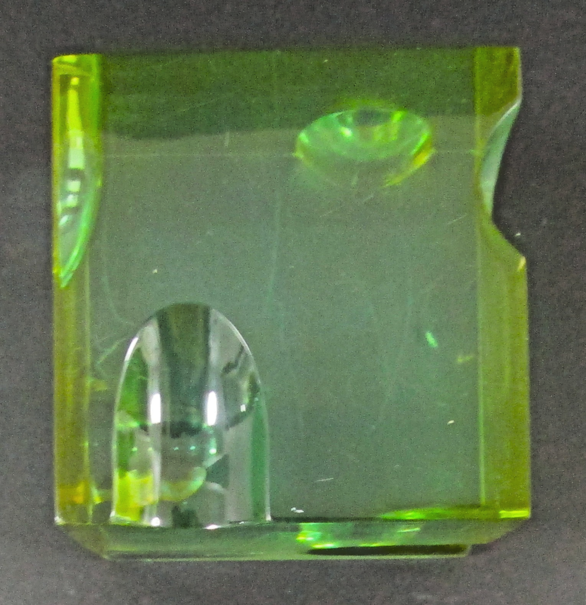 Mid-Century Modern Roz Stroll Optical Light and Space Sculpture Green Lucite Cube