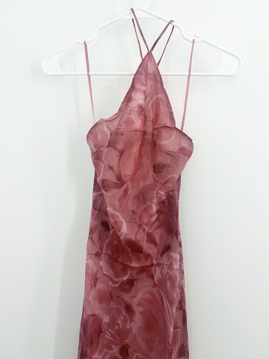 Midi-length halterneck 100% silk slip dress