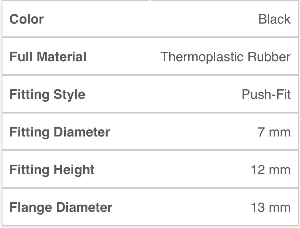 Qty-100, Essentra components, 12051B, black thermoplastic rubber, 7mm x 12mm, TPR parallel, protection plug.