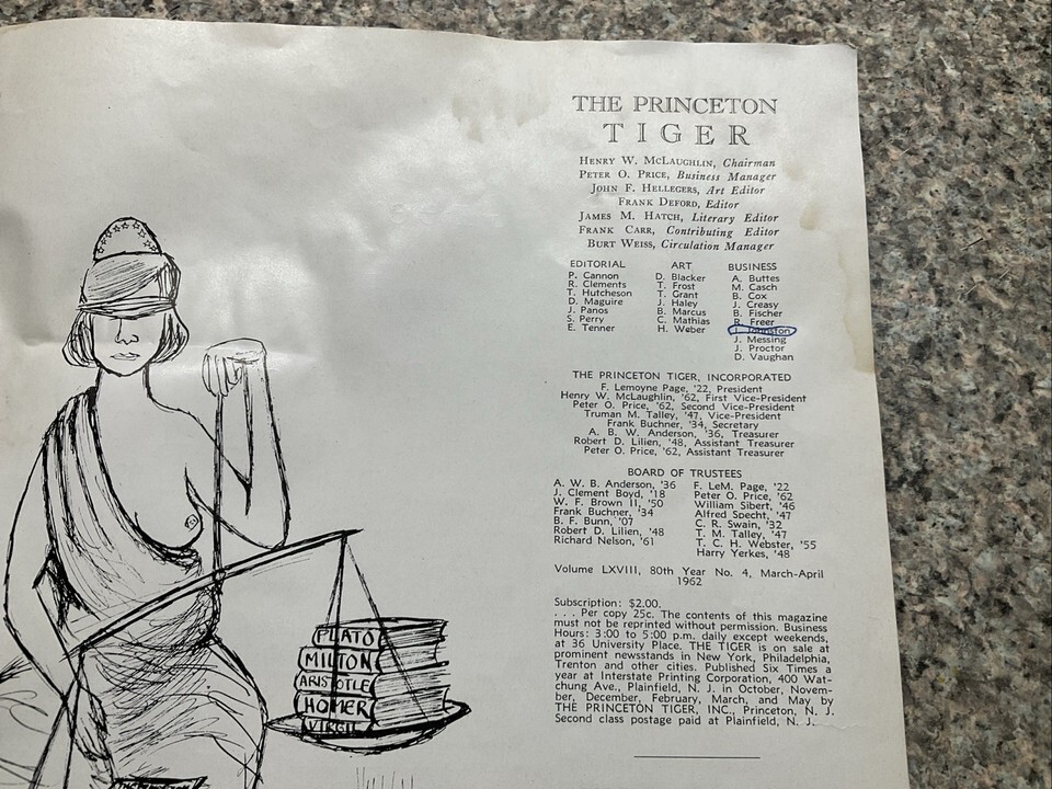 VINTAGE PRINCETON TIGER MAGAZINE 1962 WITH ADVERTISEMENTS + CARTOONS RARE