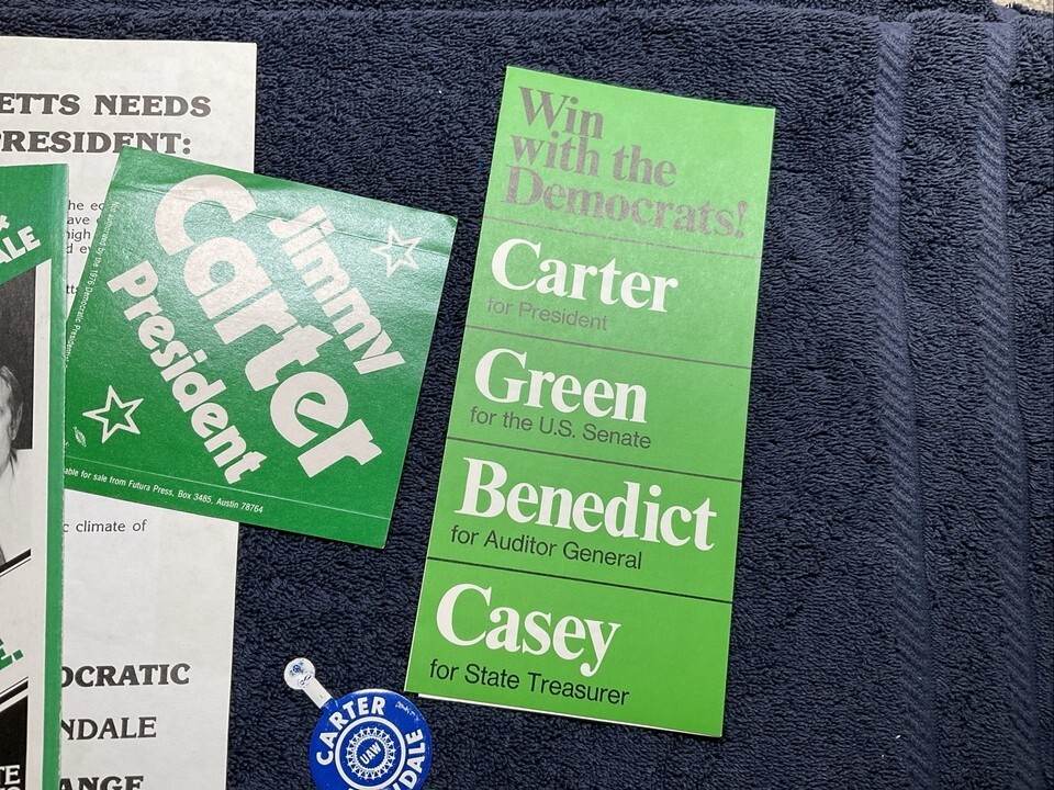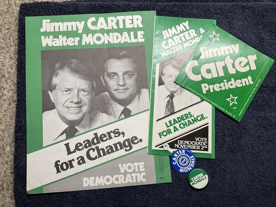 Jimmy Carter for President Bumper Sticker 1976 Presidential Campaign + Buttons