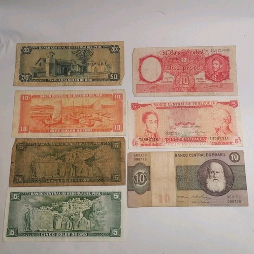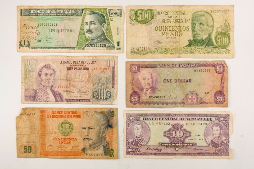 Latin America. 100 Notes From Central South America. Latin America, 100 notes from Central and South America. Mostly well worn notes. Most are from Mexico, Brazil, Costa Rica, Jamaica, etc. Visit Our Store: Continental Coin and Jewelry (Contact us for payment methods to pay on pickup.) *The customs requirements for each country, including all import duties, taxes, and fees are the responsibility of the buyer. All international packages will have the required customs declaration and value of order. California buyers: 9.5% sales tax will be added. Returns policy: Your continuing satisfaction is very important to us. We offer a 30 day money back return policy. If you are unhappy with your purchase for any reason, please notify us so that we can begin the returns process. Referenc