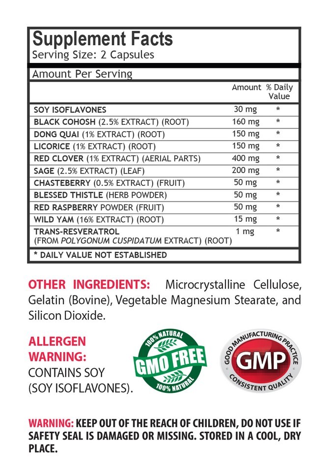 WOMEN?S SUPPORT COMPLEX NATURAL: Black cohosh is a perennial herb of the buttercup family also known as bugbane and black snakeroot and it is native to Eastern North America. Red clover can help boost your ability in post-menopausal women. It is a storehouse of many vitamins, nutrients, and minerals. Dong Quai is most commonly used as a female sex drive herb to support uterine tone and strength, for menstrual regularities and to encourage menstruation.