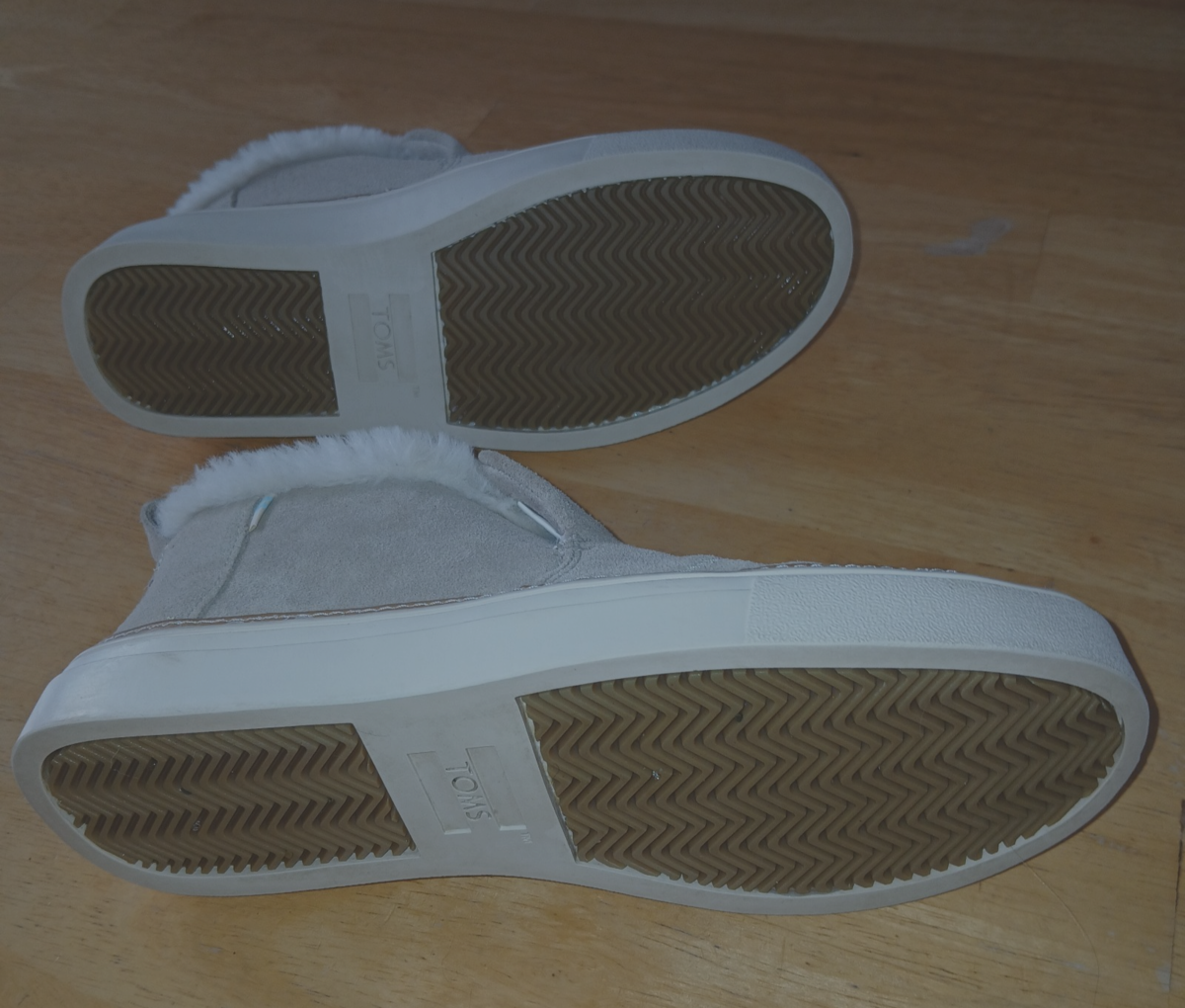 TOMS "PAXTON" TAN SUEDE LEATHER SLIP-ON SHOES W/FAUX FUR LINING-RUBBER SOLE-6