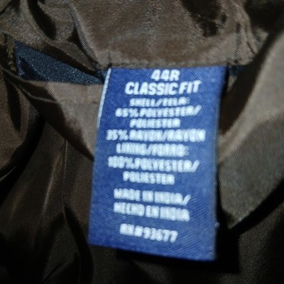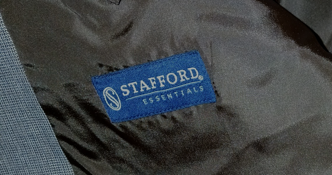 THIS IS A GREAT STAFFORD CLASSIC FIT BROWN MEN'S SPORT JACKET IN A SIZE 44R. IT IS NEW, WITHOUT THE TAGS, AND HAS A GARMENT BAG WITH IT FOR STORING. SORRY MY CAMERA DISTORTS WITH CERTAIN DESIGN WEAVES!