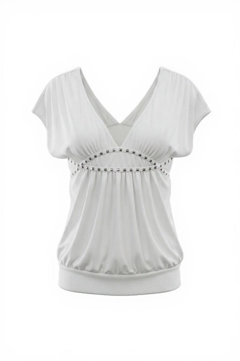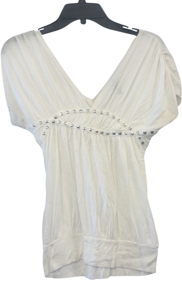 Lette Woman’s White Tunic Top with Studded Accents, Small