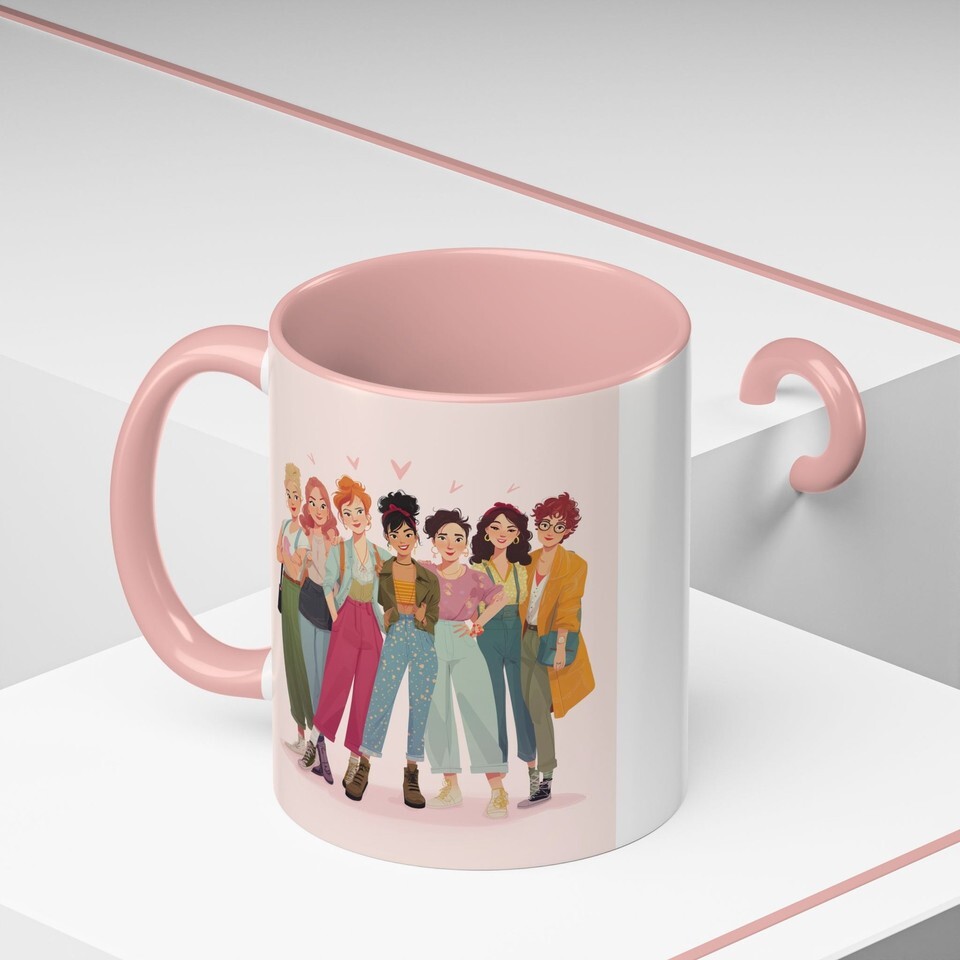 Morning light filters through the blinds. You wrap both hands around a warm ceramic mug and feel the quiet buzz of friendship?inside jokes, lipstick marks, and plans sketched on napkins. This mug carries Galentine?s Day energy: playful, warm, and a little bit sparkly. The colored handle and interior catch the eye, while the bright print stays true sip after sip. It?s the kind of mug you reach for when a friend drops by, when you?re sending a care package, or when you?re raising a toast to friendships that have grown louder and kinder through the years.