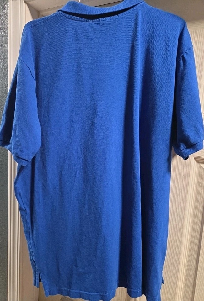 The U.S. Polo Assn Men's XL Blue Polo Shirt with short sleeves is a classic and versatile addition to any man's wardrobe. Made from 100% cotton, this solid blue shirt features a collared neckline and regular fit, making it suitable for various activities such as walking, riding, tennis, and golf. The iconic US Polo Assn. logo adds a touch of style to this timeless piece, making it perfect for the beach, school, or just casual wear.