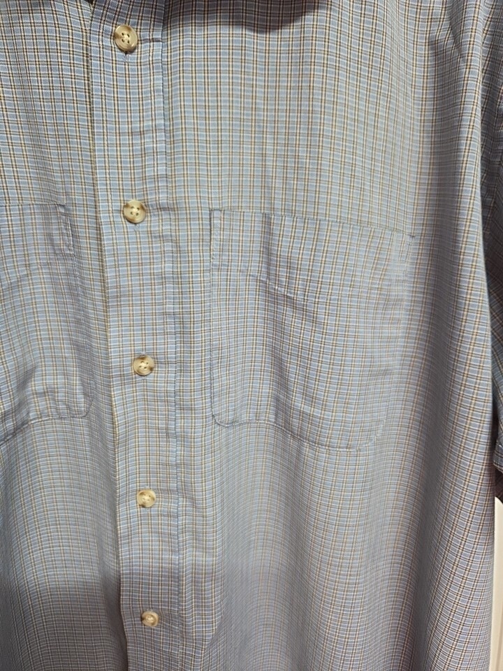 Mens VAN HEUSEN Large 16- 16 1/2 Short Sleeve Dress Shirt-Sport-Casual-Button Up