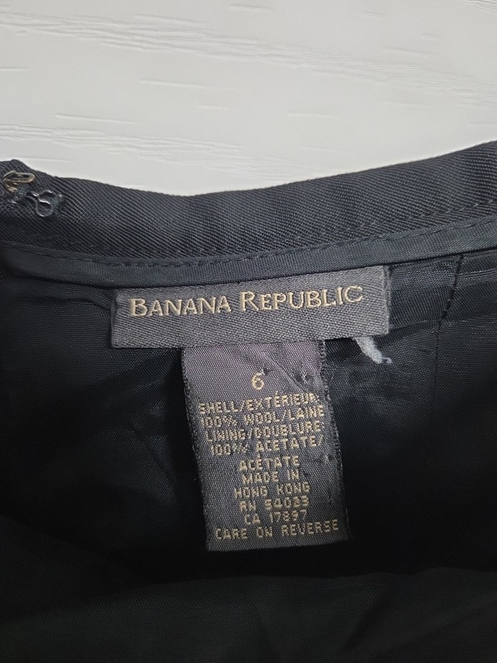 The product is a Banana Republic women's skirt in size 6, designed as a pencil skirt in classic black color. This skirt features a solid pattern with a zip closure, making it suitable for both casual and business occasions. It is machine washable and falls to knee length, making it a versatile and stylish addition to any wardrobe, perfect for the summer, fall, and spring seasons. The skirt has a straight and pencil style with a mid-rise fit, showcasing a sleek and sophisticated look that can be easily dressed up or down.