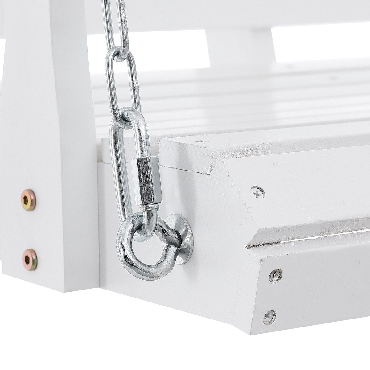 Weatherproof Durability: Coated with 3 layers of PU paint, the swing's surface is smooth, scratch-resistant, and highly waterproof. The galvanized steel chains are also weather-resistant, ensuring long-lasting use without rust, rain or shine.
