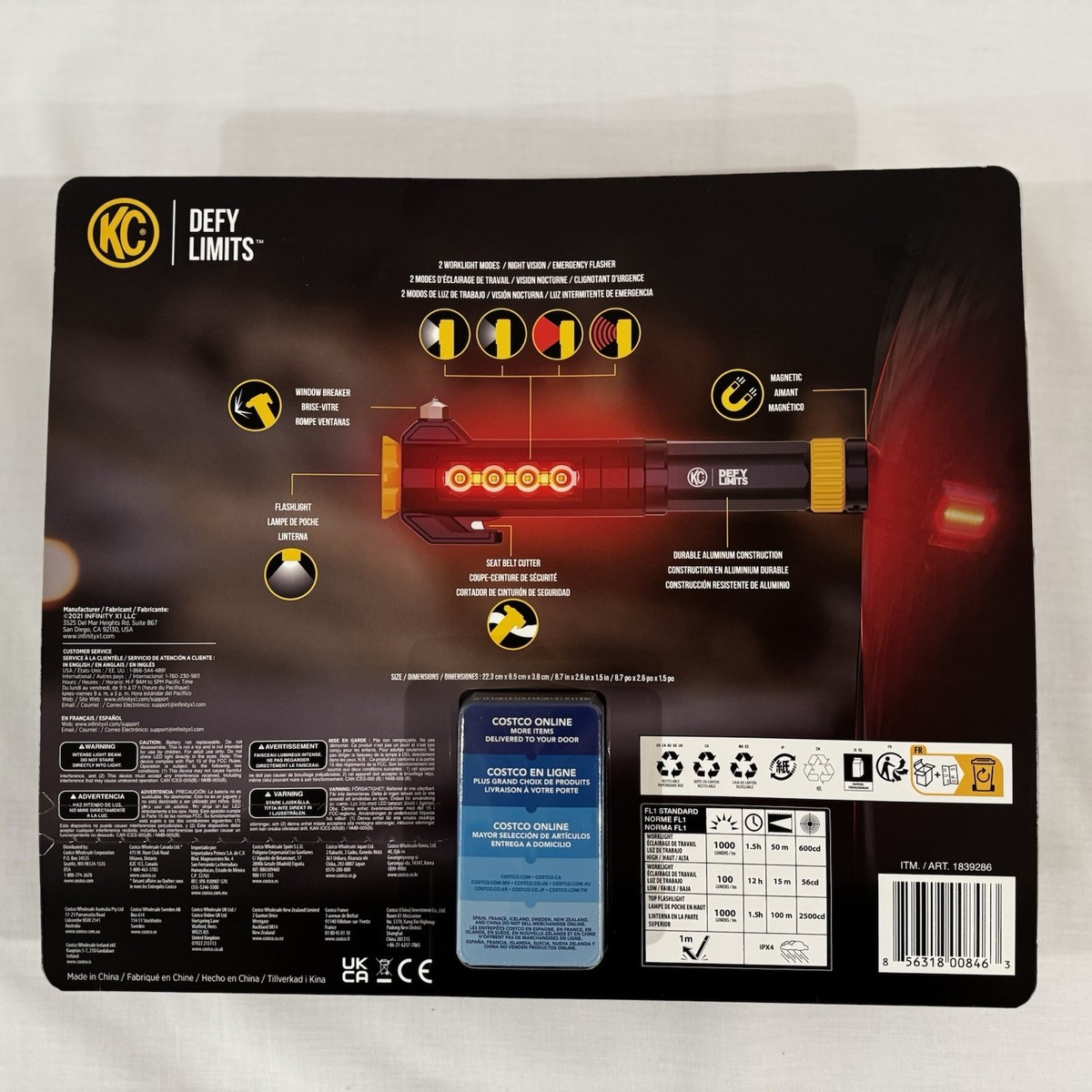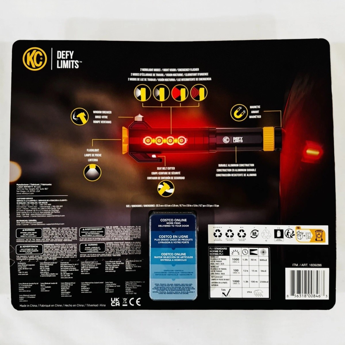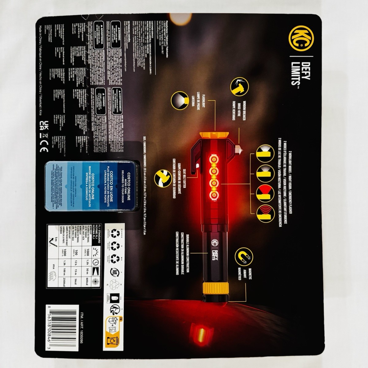 The KC Auto Light with Emergency Tool is not just a flashlight?it?s a compact roadside safety system designed for real-world emergencies. Built by KC (Defy Limits) and engineered for drivers, this 2-pack of 1000-lumen rechargeable lights delivers powerful illumination plus critical emergency tools when seconds matter.