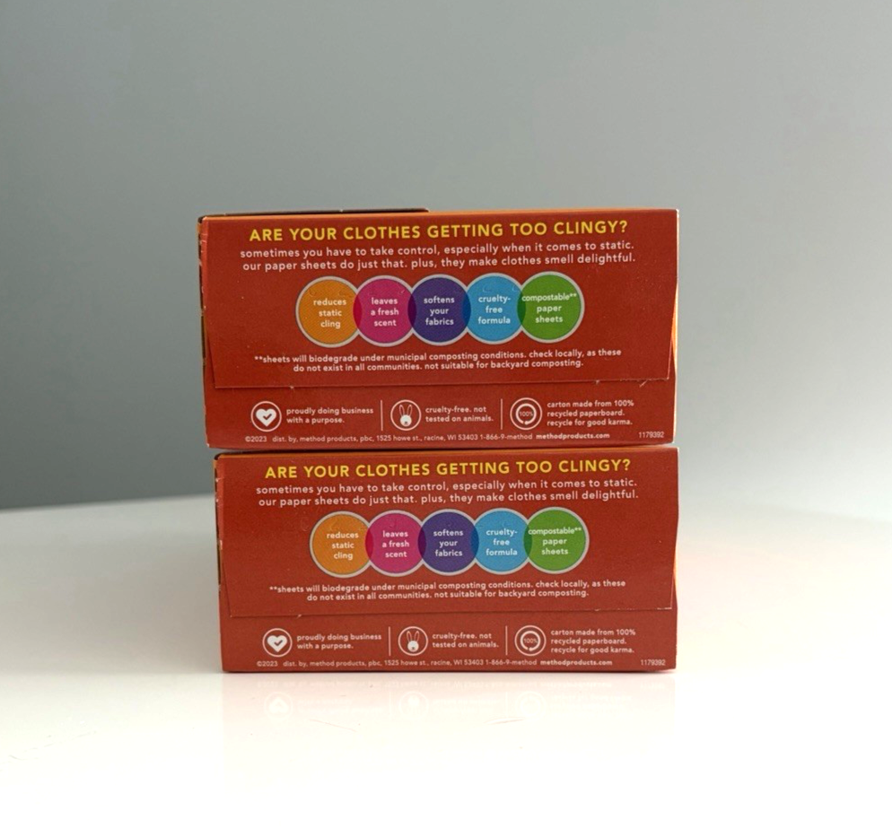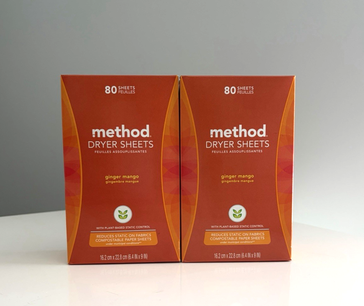 Method Paper Dryer Sheets Ginger Mango 80 Sheets Each Box - Lot of 2 New Boxes Sealed HTF