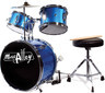 3 Piece Kids Drum Set with Throne, Cymbal, Pedal & Drumsticks, Blue,