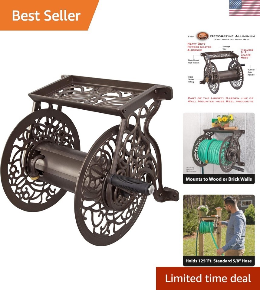 Decorative Cast Aluminum Wall Mount Garden Hose Reel, Holds 125-Feet of 5/8-I...