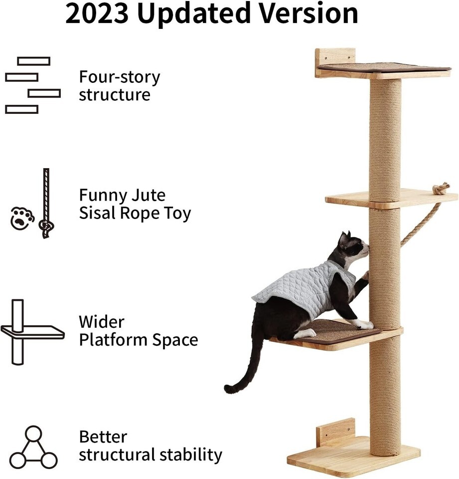 Cat Scratching Activity Tree Wall Mounted, 50 Inch Scratch Post for Large Cats, Kittens with Cat Bed, Rubber Wood, Large