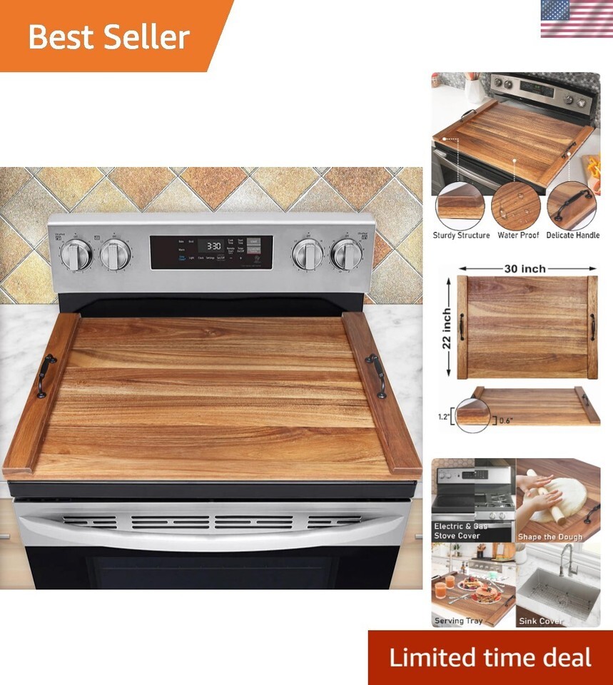 Pasta Slate Cover - Acacia Wood Top Cover for Electrical and Gas Stoves - Counter Space Stove Burner Cover - Sink Cover RV Stove Top Cover Natural Acacia