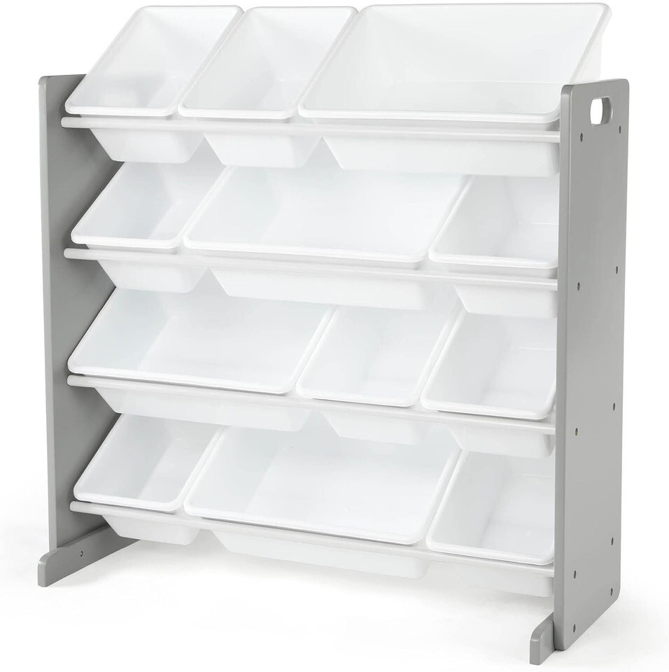 Grey/White Kids Toy Organizer with 12 Storage Bins, Toddler