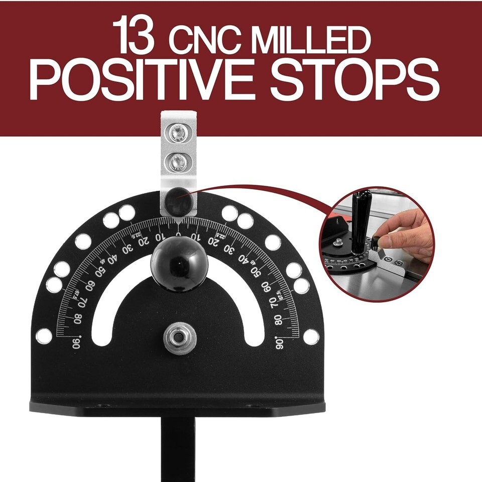Precision Miter Gauge with Aluminum Miter Fence with 45 Degree Angled Ends for Maximum Stock Support and a Repetitive Cut Flip Stop