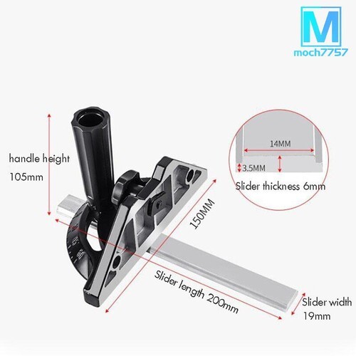 The .200? thick, adjustable, solid aluminum head is machined with 13 positive stop holes. 1 hole is at 90 degrees while the 6 holes on both sides are at , 30, 45, 60, and 90 degrees. The positive stops are perfect for many woodworking projects as they are the angles that are typically adjust the head you simply loosen the post knob handle, pull the spring loaded indexing pin outward, rotate the head to the desired position, release the pin and lock into place.