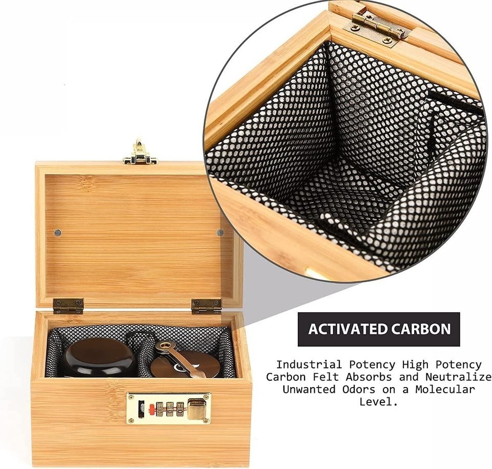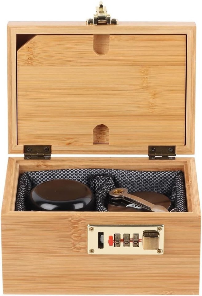 Bamboo Box with Combination Lock Decorative box for Home Locking Storage Bamboo Box Set with Glass Jar Tray Great Gift M