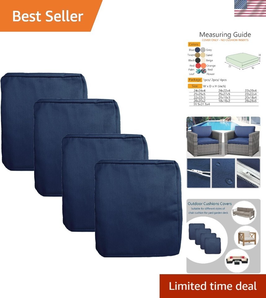 20x20x2 Waterproof Outdoor Cushion Cover Replacement 4Packs Outdoor Seat Cush...