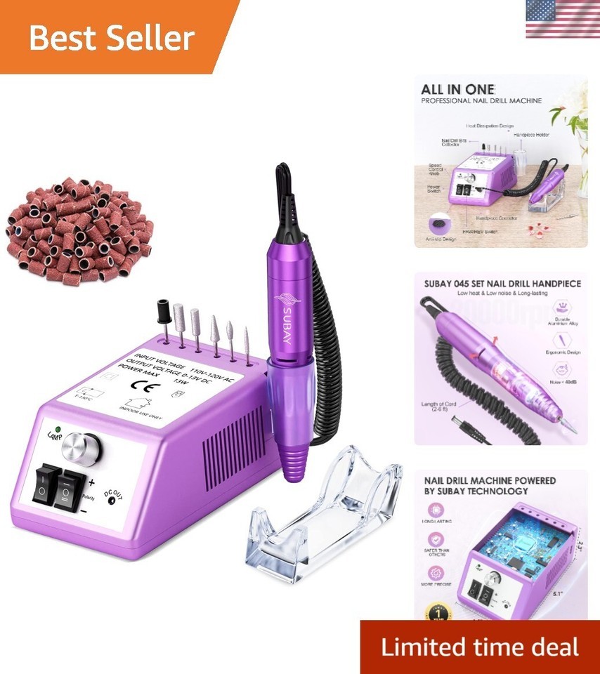 Professional Finger Toe Nail Care Electric Nail Drill Machine Manicure Pedicure Kit Electric Nail Art File Drill with 1 Pack of Sanding Bands Purple