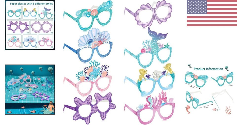 24-Piece Mermaid Themed Paper Eyeglasses Set and 50 similar items