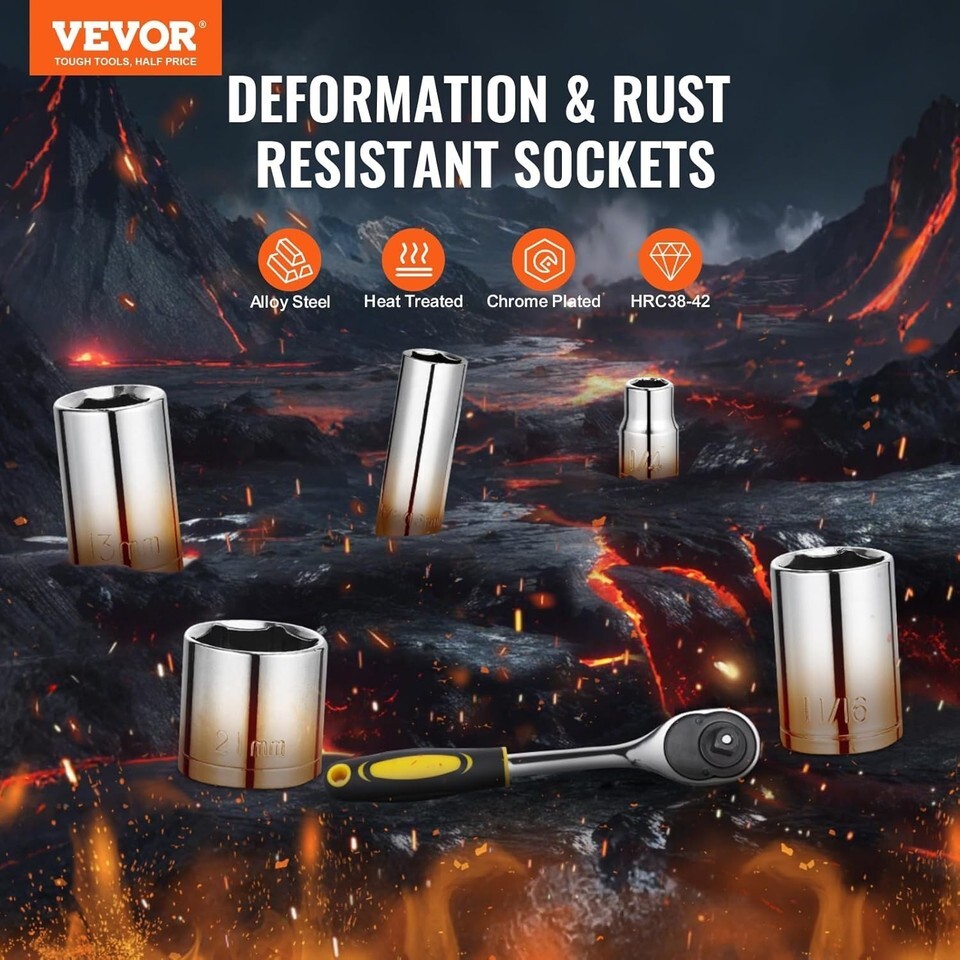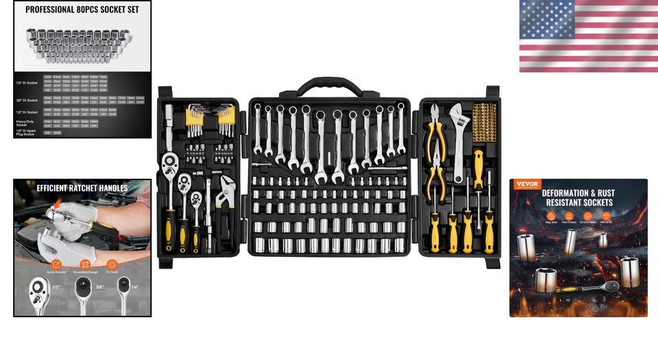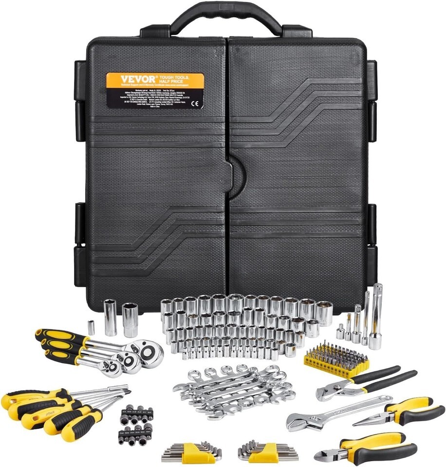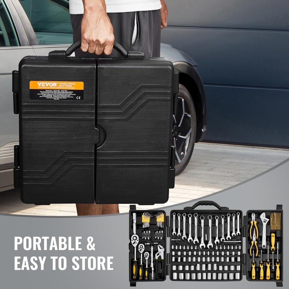 Portable 207-Piece Tool Set with Alloy Steel Sockets & Organized Storage Case