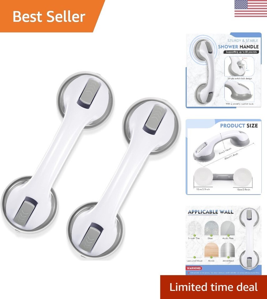 Grab Bars for Shower, 12 Inch Shower Handle Strong Suction Shower Grab Bar for Shower Chair Stool, Bathroom Safety Bar for Seniors, Elderly 2 Pack