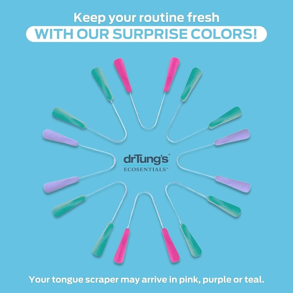 YOUR BREATH?S FRIEND Colors may vary, Over 1 million sold. DrTung?s tongue cleaner mouth scraper helps remove build up and soft plaque in seconds! Gentle on the tongue, easy to use to help maintain better oral hygiene. Take our portable tongue scraper anywhere with our bamboo fabric storage pouch