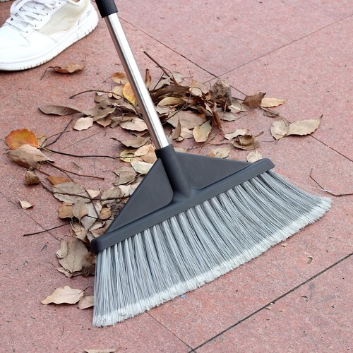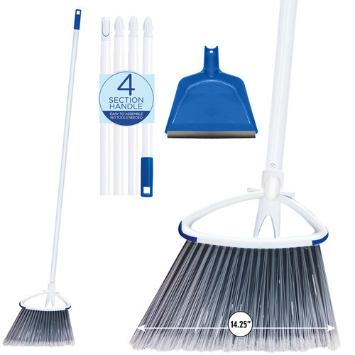 This heavy-duty large scoop dust pan gets the job done on any quick pick-ups of larger debris and garbage. One of the key features is the ability to lock or unlock the dust pan in place. While unlocked, the pan automatically swivels vertically when it is picked up to hold the debris inside. Built-in "teeth" also clean out any wide angle broom's bristles directly into the pan. The angled handle grip lightens the load on the wrists while carrying up to 30 lbs. of gravel, garbage, debris, and more.