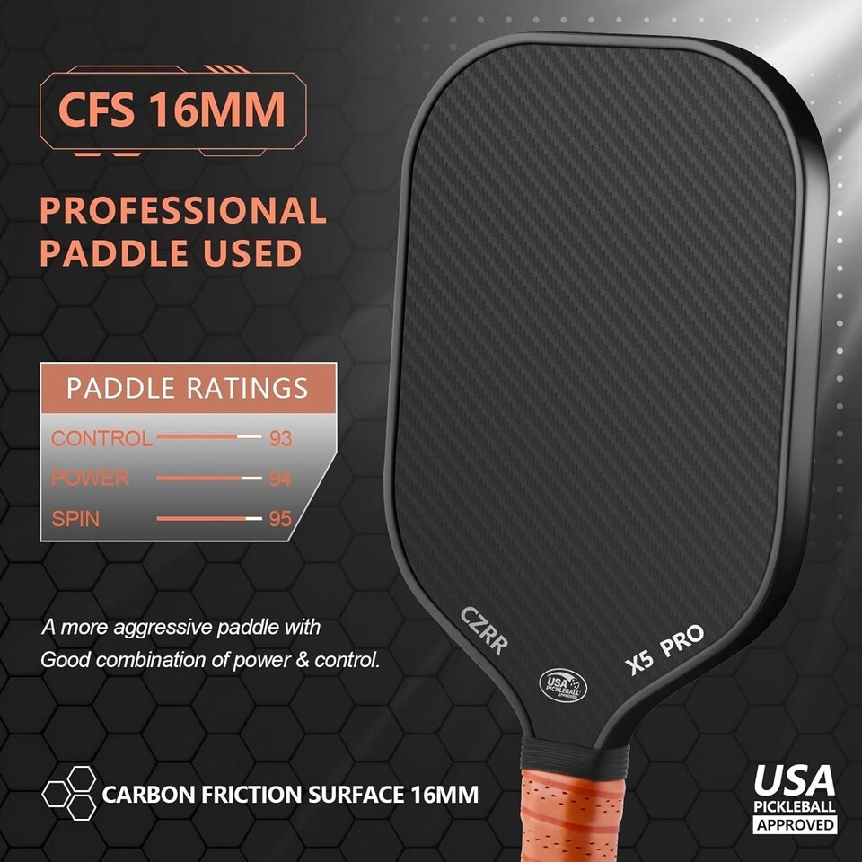Pickleball Paddle, Pickleball Approved, 3K Raw Carbon Fiber Surface CFS High Grit Spin, with 16MM Polypropylene Honeycomb Core, Ideal for Novice and Professional Players