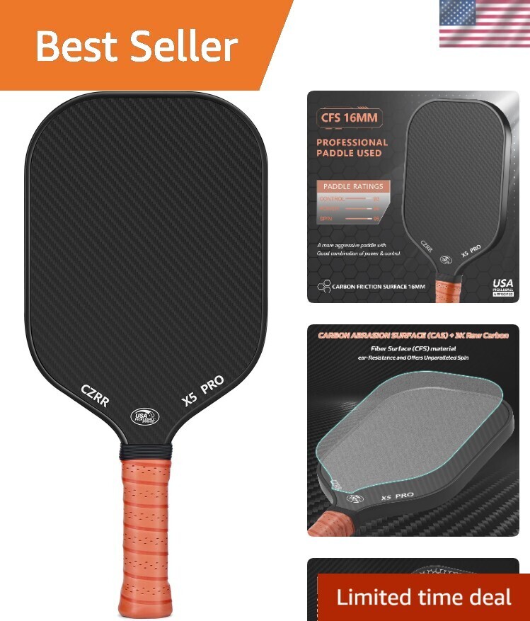Pickleball Paddle, Pickleball Approved, 3K Raw Carbon Fiber Surface CFS High...