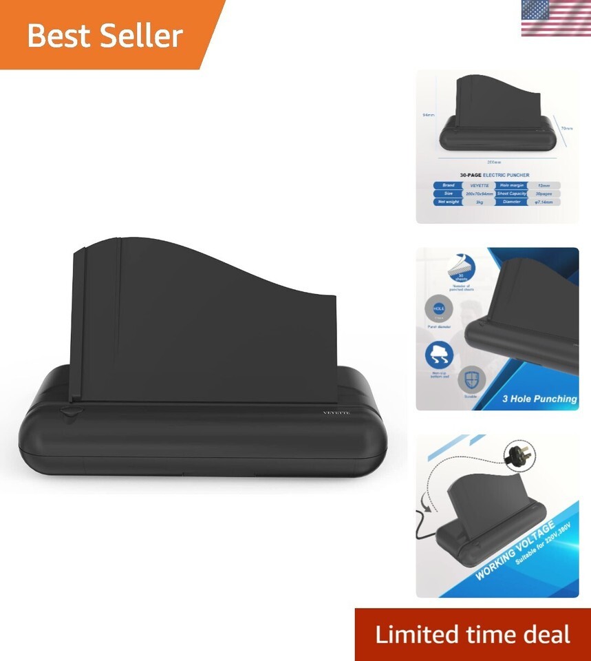 Electric 3 Hole Paper Punch, Heavy Duty Commercial Hole Puncher with Adapter for Office School Studio, 30 Sheet Capacity,Color Black