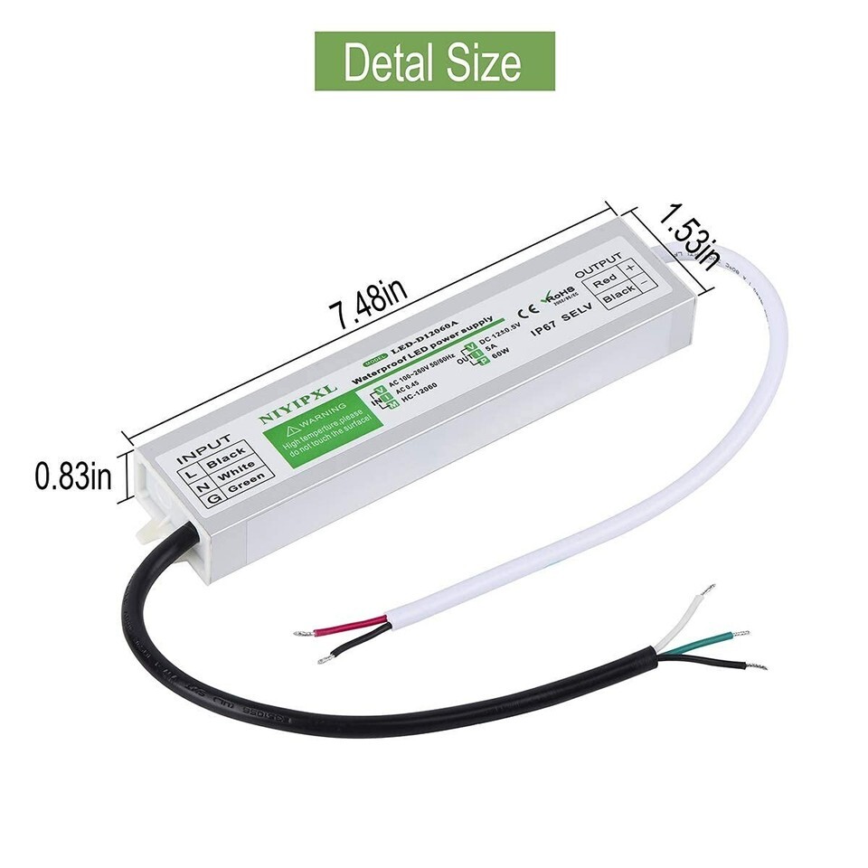 Pack of 6) LED Driver 60 Watts Waterproof IP67 Power Supply Transformer Adapter 100V-260V AC to 12V DC Low Voltage Output for LED Light, Computer Project, Outdoor Light and Any 12V DC led Lights