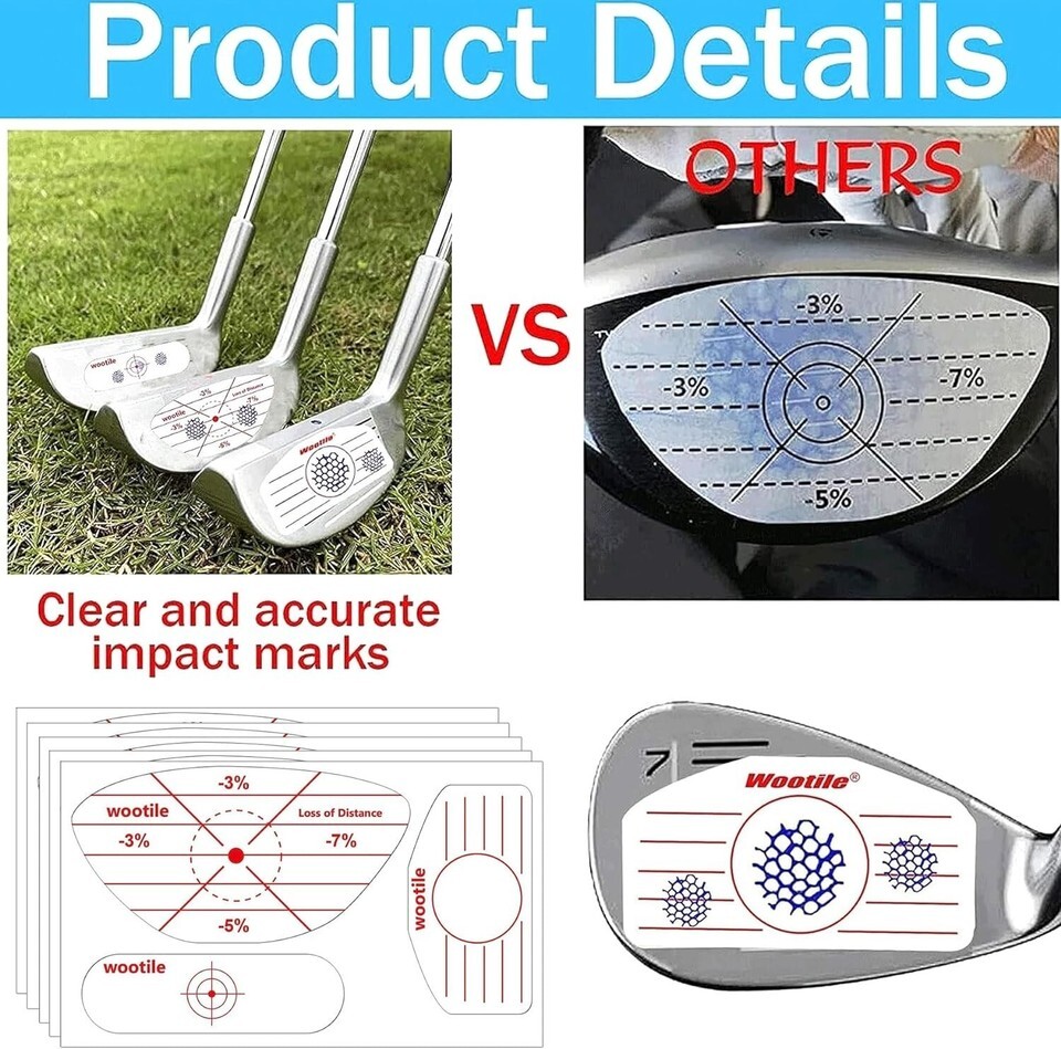 Immediate Feedback Blue Marks inch each Driver,Iron and Universal Impact Label;120pcs Golf Impact Tape Labels face tape. Golf Impact Tape, Easy to apply, leaving no sticky residue,it do not damage your golf club's face Driver impact tape labels can be used on right and left-handed clubs. Each the thinnest golf impact tape can be used to capture at least 6 impacts Enables golfers to get the most out of every practice session by immediately knowing the effect of strike location on every swing LEARN WHAT GOOD STRIKING FEELS LIKE. Intuitively learn the feel for when you mis-hit the ball. See what it looks like when you mis-hit, or when you swing perfectly, allowing you to make the adjustments necessary to your swing to help ensure consistency.