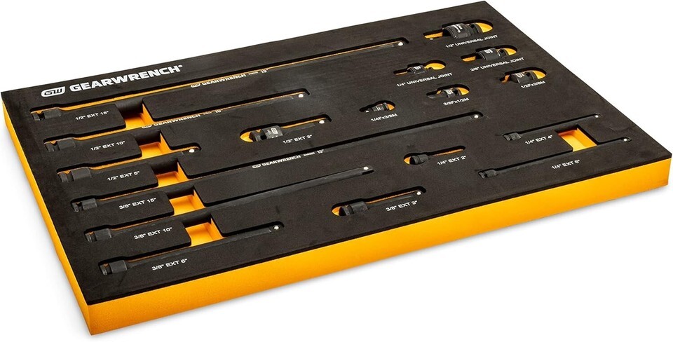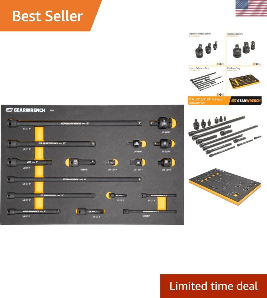 17 Piece 1/4", 3/8", 1/2" Impact Drive Tool Accessories Set with EVA Foam Tray -