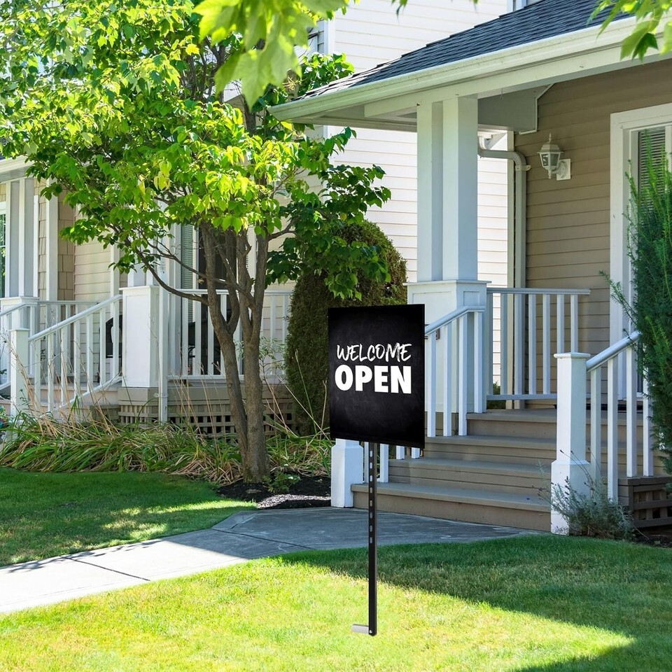 Material and Appealing Aesthetics: crafted with metal, these sign stakes provide a sturdy base for your signs to withstand inclement weather conditions; Additionally, their elegant black color will complement most signs, enhancing its visibility and curb appeal; A nice addition to lawn, garden, storefront or event location