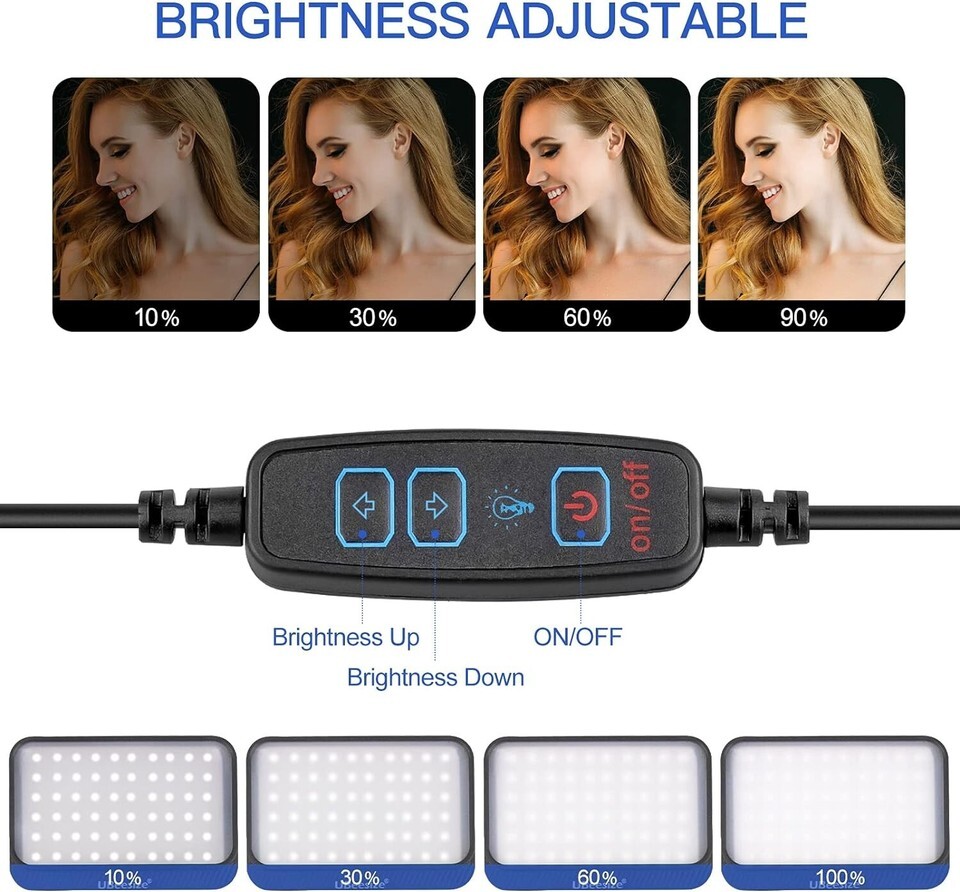 Video Lighting Kit:-The small LED panel light is equipped with a 1/4 universal ball head, which can adjust the panel 180to to easily meet your different shooting angle requirements; cable control 10%-100% brightness level option. The up and down buttons can easily meet the needs of your shooting occasion.