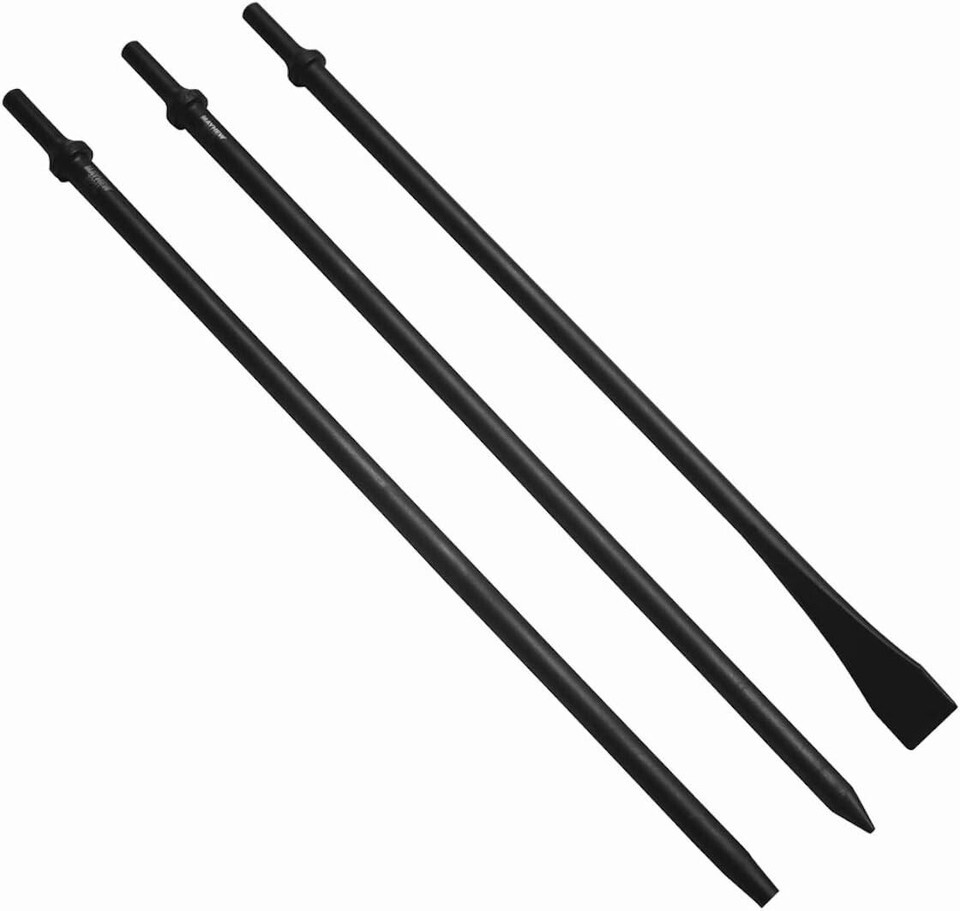 The long pneumatic tool set, 3-piece, includes: 32010 pneumatic Scraper 1-1/8 x 18-Inch, 32011 pneumatic taper punch 3/8 x 18-Inch, and 32012 pneumatic taper punch 1/8-inch x 18-inch. This three piece set features a black oxide finish for additional protection against rust. Made in the USA. . Founded in 1856, Mayhew Steel Products () is the oldest punch and chisel manufacturer in the United States. As we've grown from a small tool house to the industry leader, there's only one thing that hasn't changed?our dedication to quality, reliability, and craftsmanship. That's why we've become the tool of choice for certified technicians and professional mechanics across the country, and have found a home in the belts of do-it-yourselfers as well. Over time our product line has grown but our passion for manufacturing quality hand tools continues as we serve the Industrial, Automotive and Hardware industries. Mayhew is ISO 9001:2015 Certified. From the Manufacturer Extra long body for those hard-to-reach areas Includes- Long Scraper, Long Taper Punch, and Sharp Point Long Taper Punch, Flat Tip Weight: