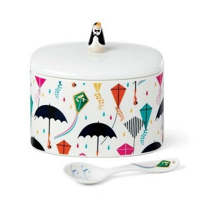 Celebrate the return of everyone's favorite nanny with the Disney's Mary Poppins Returns Sugar Bowl with Spoon. Mary Poppins Returns is a sequel to the 1964 classic. This item is crafted of durable and pristine white ceramic porcelain, and features a charming kite and umbrella motive along the sides.