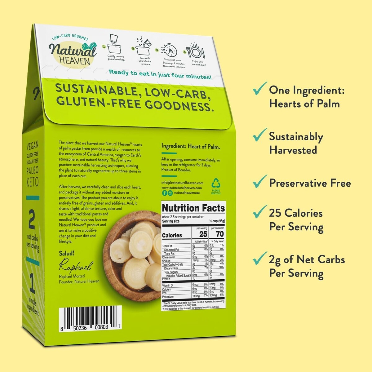 HEARTS OF PALM NOODLES ARE GLUTEN-FREE: Level up your keto food options with a pasta everyone can enjoy with our 100% gluten-free spaghetti noodles.